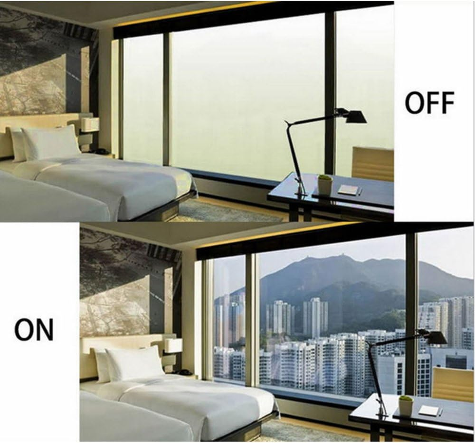 Switch from clear to private in milliseconds great for offices, clinics, conference rooms, and storefront windows.